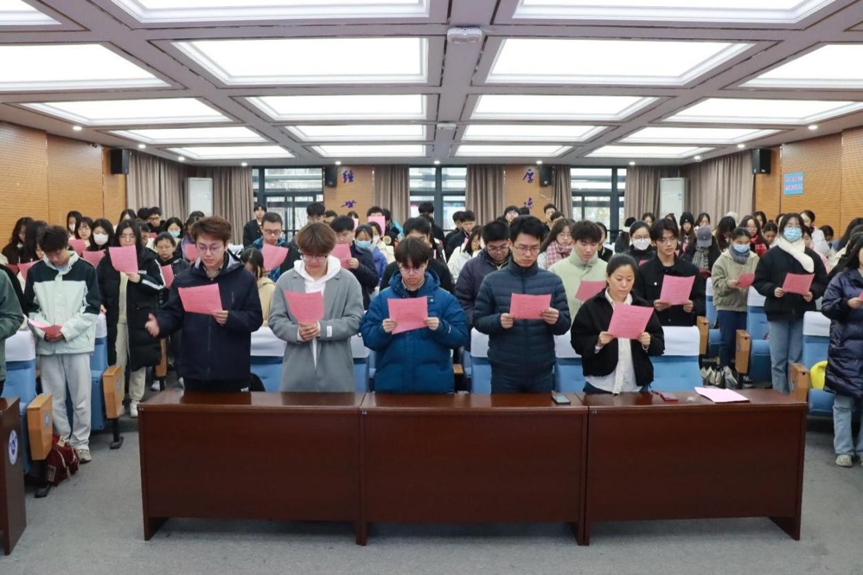 宪法晨读,“宪”入人心。12月4日,学院在A405报告厅举行宪法晨读活动。学院党委副书记周建强、全体辅导员和113名法律系学生参加本次活动。此次活动旨在深入开展宪法学习教育,让师生更加深入地了解和认识宪法,引导学生对法律知识学以致用。