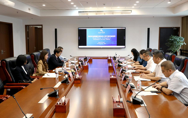 9月24日上午,我校与泰国巴吞他尼大学聚焦新能源专业、交换生项目、教师交流等议题开展教育合作洽谈,旨在通过资源共享、优势互补,共同推动教育国际化进程,培养具有国际竞争力的优秀人才。泰国巴吞他尼大学副校长Nithima Yuenyong ,未来新能源技术(泰国)有限公司总裁Pornchai Pitisakulwong,我校副校长胡云进、化学化工学院党委书记徐青、执行院长曾敏峰,国际交流合作处相关负责人等参加会议。