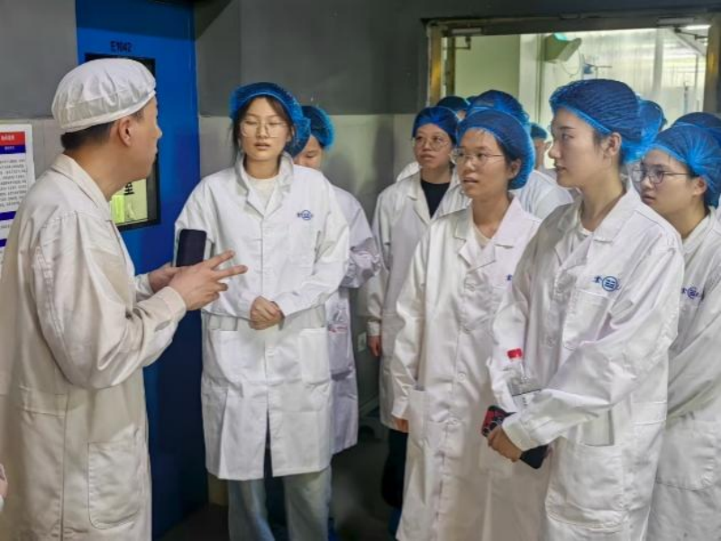 研学活动的第三站,同学们来到了绍兴市食品药品检验研究院。研究院谢浙裕副院长向学生介绍了食药研究院的发展历程,承担的食品、药品、医疗器械、化妆品等方面的质量检验工作内容。随后,谢浙裕副院长和胡建刚所长分别带队参观了食品和药品检测流程,介绍了气相色谱、高效液相色谱等常用分析仪器的基本原理和操作方法。学生还在研究院体验了药品、食品快检实验。研究院的研学让同学们实地接触到各种不同的分析仪器,充分体会到药品分析的高标准、严要求,为后续《药物分析》、《仪器分析》等专业课程学习打下了基础。