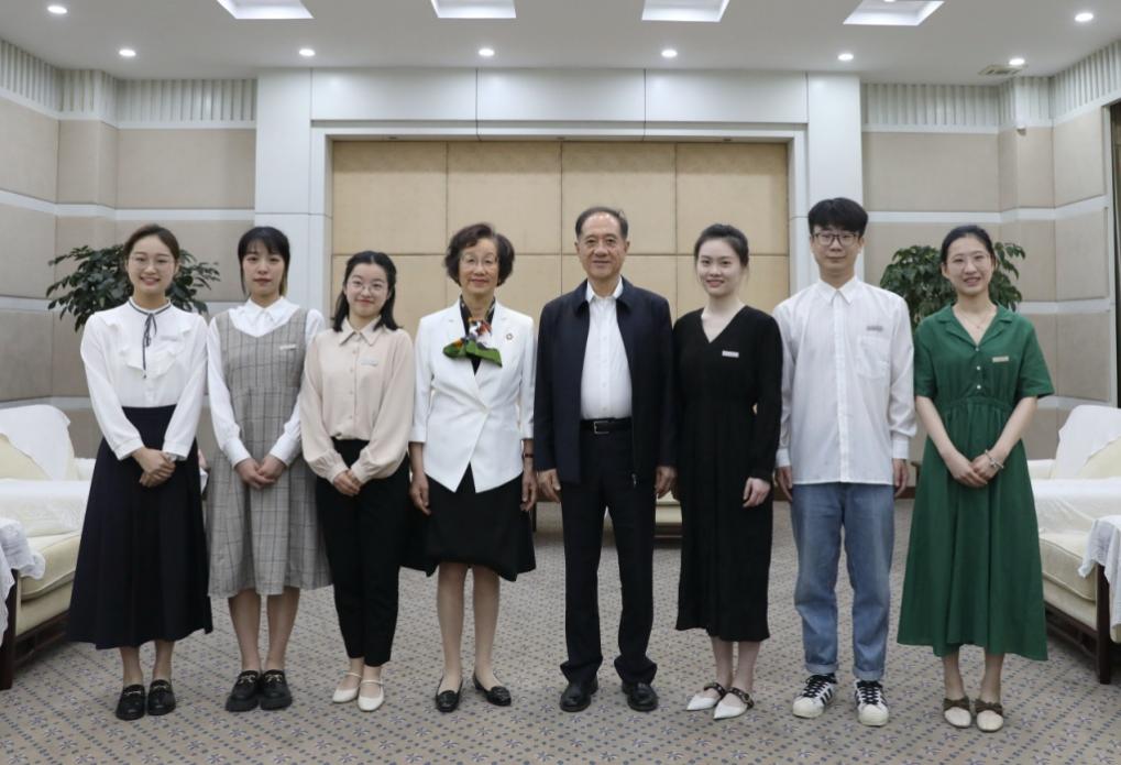 颁奖典礼之前,韩启德院士和袁明教授在铁城科教馆二楼接待室亲切接见了获奖师生。