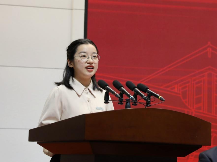 获奖学生代表夏丹发表获奖感言。她用“志气、静气、拼气、大气”4个词表达了自己对“卓越”的理解,表示将倍加珍惜荣誉,奋发向上,不断前行,朝着“卓越”的目标不断前行。