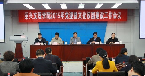 4月20日下午,学校2015年党建暨文化校园建设工作会议在图书馆报告厅举行。校党委书记周达军,校党委副书记钱水祥,校纪委书记邱卫东,校党委委员、组织部部长宣绍龙,校党委委员、宣传部部长胡保卫出席会议。会议由校党委副书记钱水祥主持。
