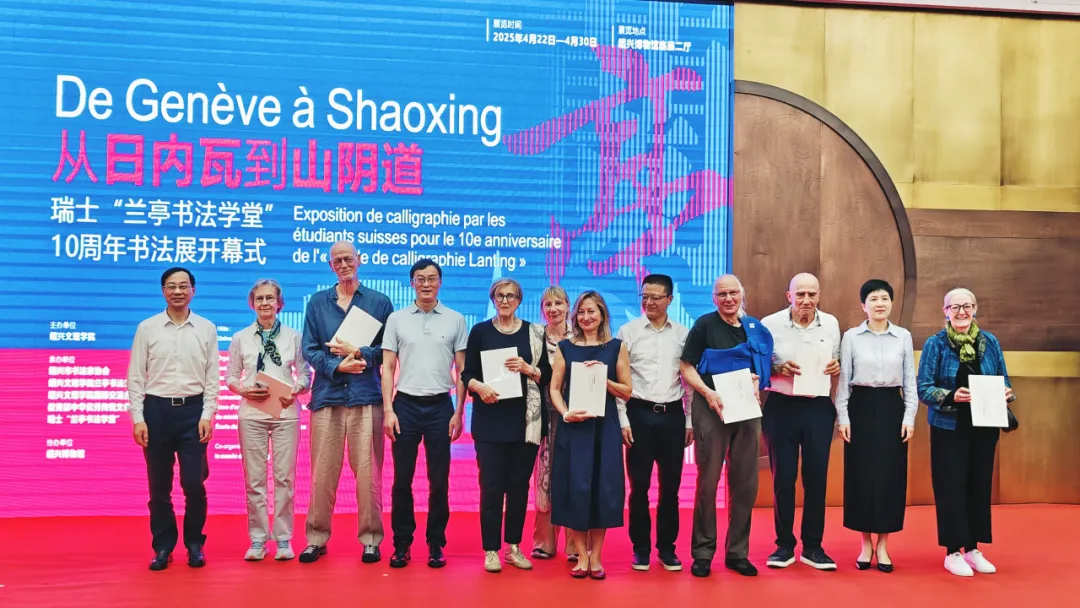 张雪代表绍兴市政府向远道而来的瑞士友人及各位嘉宾致以热烈欢迎,向为文化交流辛勤付出的工作者表达衷心感谢,并宣布展览开幕。她表示绍兴因《兰亭集序》成书法文化地标,又因“兰亭书法学堂”搭建起中瑞文化交流桥梁,让瑞士学员不仅掌握书法技法,更领略到 “天人合一”“刚柔并济” 的东方智慧,同时也让中国感受到艺术无国界的魅力,实现了双向的文化交流与对话。未来,绍兴将以书法为桥,深化国际文化交流,让这座城市成为世界文明互鉴的舞台。