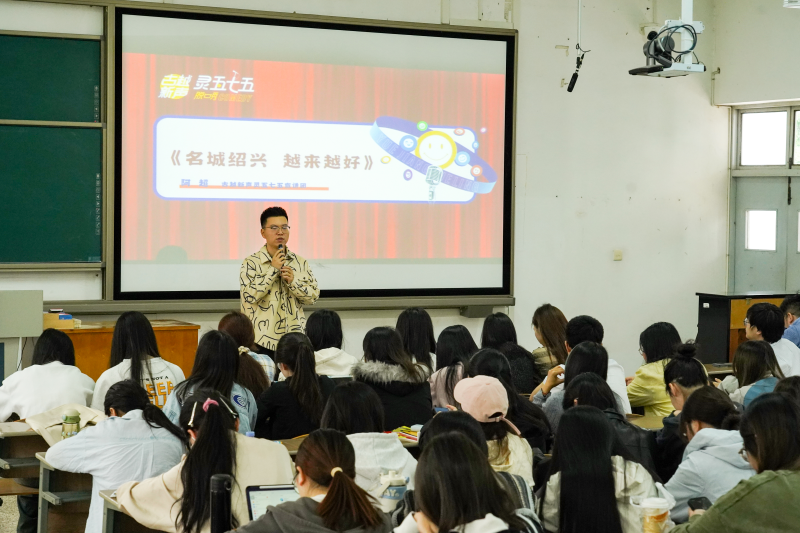 4月25日上午,蔡元培艺术与设计学院邀请“古越新声 灵五七五”宣讲团来院开展“绍兴青年说”主题宣讲活动。本次宣讲将开放麦、曲艺等年轻化的方式融入理论知识,为同学们带来了名城绍兴、防诈骗、文化自信等故事,现场气氛热烈,同学们直呼过瘾。